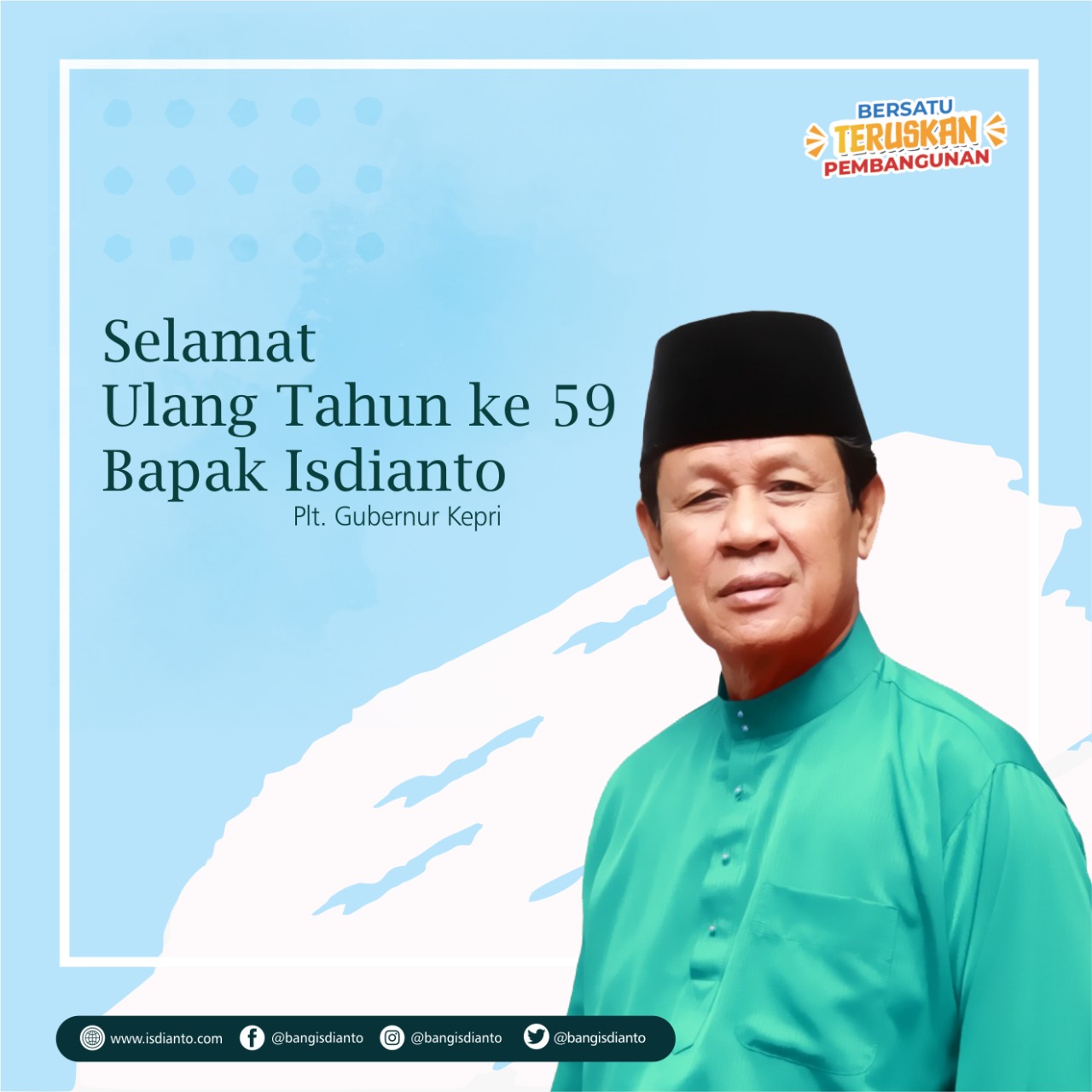 Batam – Berbagai kalangan masyarakat ucapkan selamat ulang tahun kepada Pelaksana Tugas (Plt) Gubernur Kepulauan Riau (Kepri) H. Isdianto yang pada hari ini, Minggu (3/5/2020), genap berusia 59 tahun. Selain di media sosial, ucapan selamat hingga doa terus berdatangan dari masyarakat kepada pemimpinnya di berbagai daerah di Kepri.