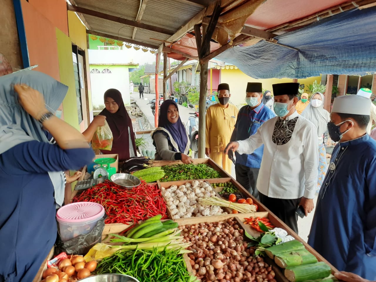 Usai bersilaturahmi dengan jamaah di masjid, Isdianto langsung bergerak menuju Kampung Bugis. Di Pasar tak lupa Adik Kandung H. Muhammad Sani ini berpesan kepada masyarakat untuk tetap menerapkan protokol kesehatan sembari membagi-bagikan masker kepada masyarakat setempat.