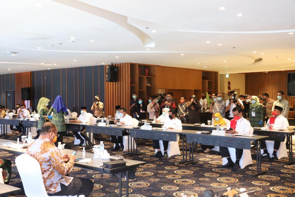 “Sebagian besar masa jabatan bapak/ibu akan berhadapan dengan masalah ini, berhadapan dengan masalah kesehatan, mencegah penularan Covid-19. Bagaimana menghadapi ekonomi yang stagnan di daerah masing-masing karena ada pembatasan, restoran yang tutup, hotel-hotel yang terdampak, tourism yang terdampak, pabrik-pabrik yang ada PHK, dan lain-lain,” tegasnya.
