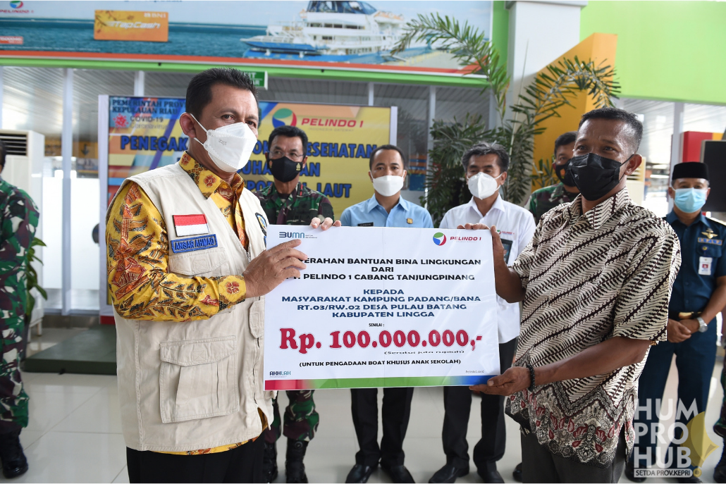 Acara dilanjutkan dengan pemasangan atribut Petugas Satgas Covid-19 berupa ban lengan dan rompi oleh Gubernur Ansar kepada perwakilan Petugas Satgas dan penyerahan secara simbolis bantuan Bina Lingkungan PT. Pelindo I berupa 1 unit boat untuk anak sekolah senilai Rp. 100.000.000,- di Kampung Padang Banang Desa Pulau Batang. Dalam kesempatan itu juga Gubernur Ansar meninjau kesiapan penegakan Protokol Kesehatan di Beberapa titik di Pelabuhan Sri Bintan Pura.