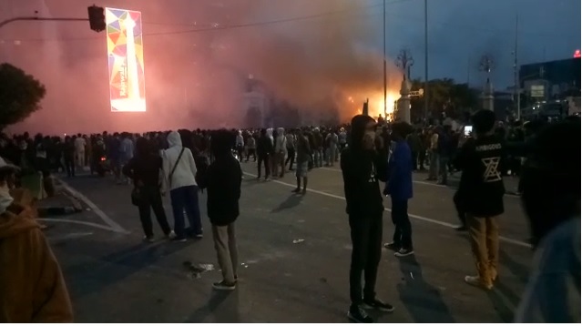 Berdasarkan pantauan PojokSatu.id di lapangan, pembakaran itu terjadi sekitar pukul 18.00 WIB selepas adzan Magrib. Hal itu dipicu setelah polisi berhasil memukul mundur massa aksi.