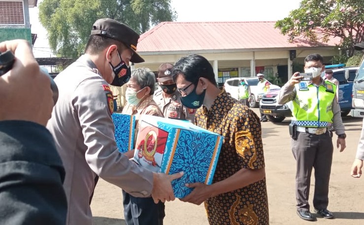 Jakarta- Polres Metro Bekasi Kota memberikan bantuan sembako kepada pensiunan atau warakauri Polri yang terdampak akibat pandemi Covid-19. Bantuan sosial berupa paket sembako merupakan kepedulian Polri dalam rangka HUT Bhayangkara ke 75 yang serentak dbagikan di wilayah Polres Metro Bekasi Kota.
