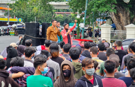 Mediaonline.co.id, MEDAN — Sejumlah massa yang tergabung di dalam Koalisi Aktivis Mahasiswa Indonesia (KAMI) mendeklarasikan keberadaannya di titik nol Kota Medan, Sumatera Utara, Kamis (10/9).