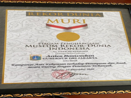 Kampanye Antikekerasan Terhadap Perempuan dan Anak di DKI Jakarta tahun 2020 dengan jumlah mencapai 782.556 peserta meraih penghargaan dari Museum Rekor Dunia-Indonesia (MURI). Penghargaan dari MURI tersebut dianugerahkan kepada Gubernur DKI Jakarta, Anies Baswedan.