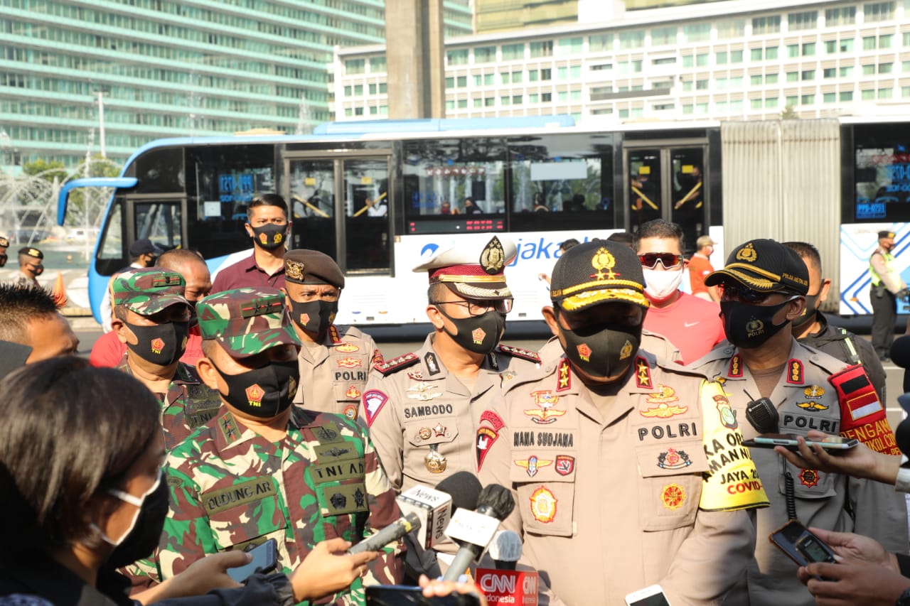 “Dalam hal ini Presiden sudah menginstruksikan melalui Instruksi Presiden Nomor 6/2020, Polda Metro Jaya dan Kodam Jaya selaku Satgas agar menegakkan protokol kesehatan,” kata Irjen. Pol. Drs. Nana Sujana, M.M.