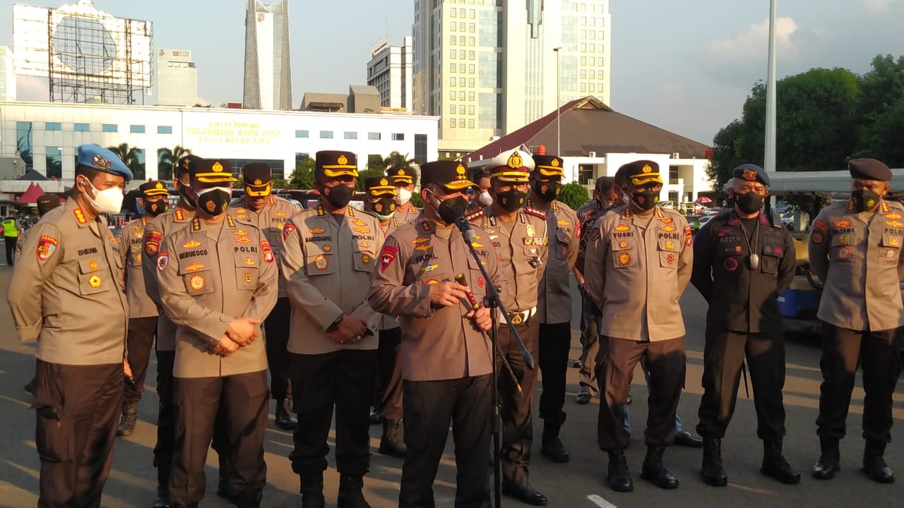 Jakarta- Polda Metro Jaya melepas tim patroli sosialisasi protokol kesehatan ke kampung-kampung di Jakarta. Juga menyediakan ambulans untuk warga positif COVID-19 yang tak memiliki sarana transportasi ke rumah sakit.