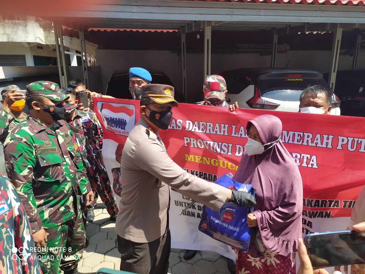 JAKARTA – Kapolres Metro Jakarta Timur Kombes Pol. Erwin Kurniawan, SIK, SH, M.Hum bersama Ormas Laskar Merah Putih ( LMP ) Pimpinan Bpk. Agus Salim melaksanakan pembagian Bansos dalam rangka Bakti Sosial Bhayangkara untuk Negeri di Jl. Pisangan Baru II E Rt. 013 Rw. 007 Kel. Pisangan Baru Kec. Matraman Jakarta Timur. Senin (26 Juli 2021) Siang.