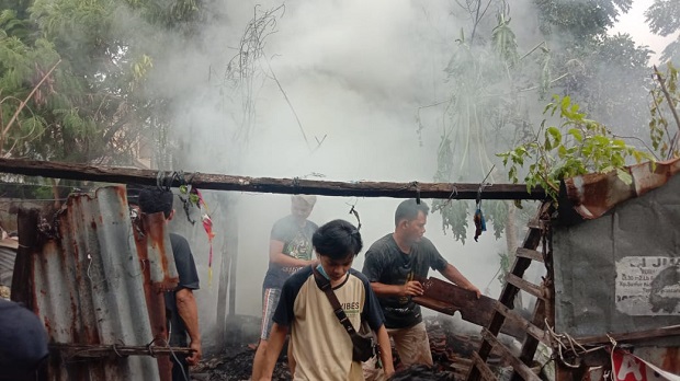 “Dugaan sementara itu terbakar karena puntung rokok yang dibuang, kemudian api menyambar barang rongsokan yang mudah terbakar,” ujarnya.