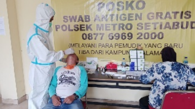 Jakarta-Bertempat di Polsek Metro Setiabudi, sebagai posko Swab Antigen Gratis kembali diadakan tes Covid bagi warga yang baru saja kembali dari kampung halamannya.