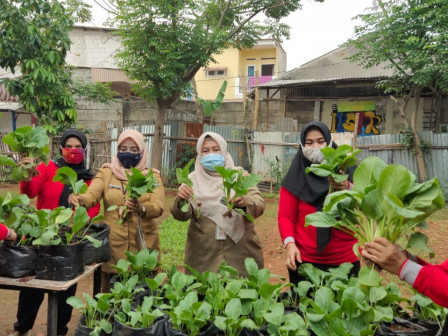 Kelompok Wanita Tani (KWT) Melati Senja, RW 03, Kelurahan Pegadungan , Kalideres, Jakarta Barat berhasil memanen sebanyak 20 kilogram sayur mayur dari lahan pertanian urban farming.