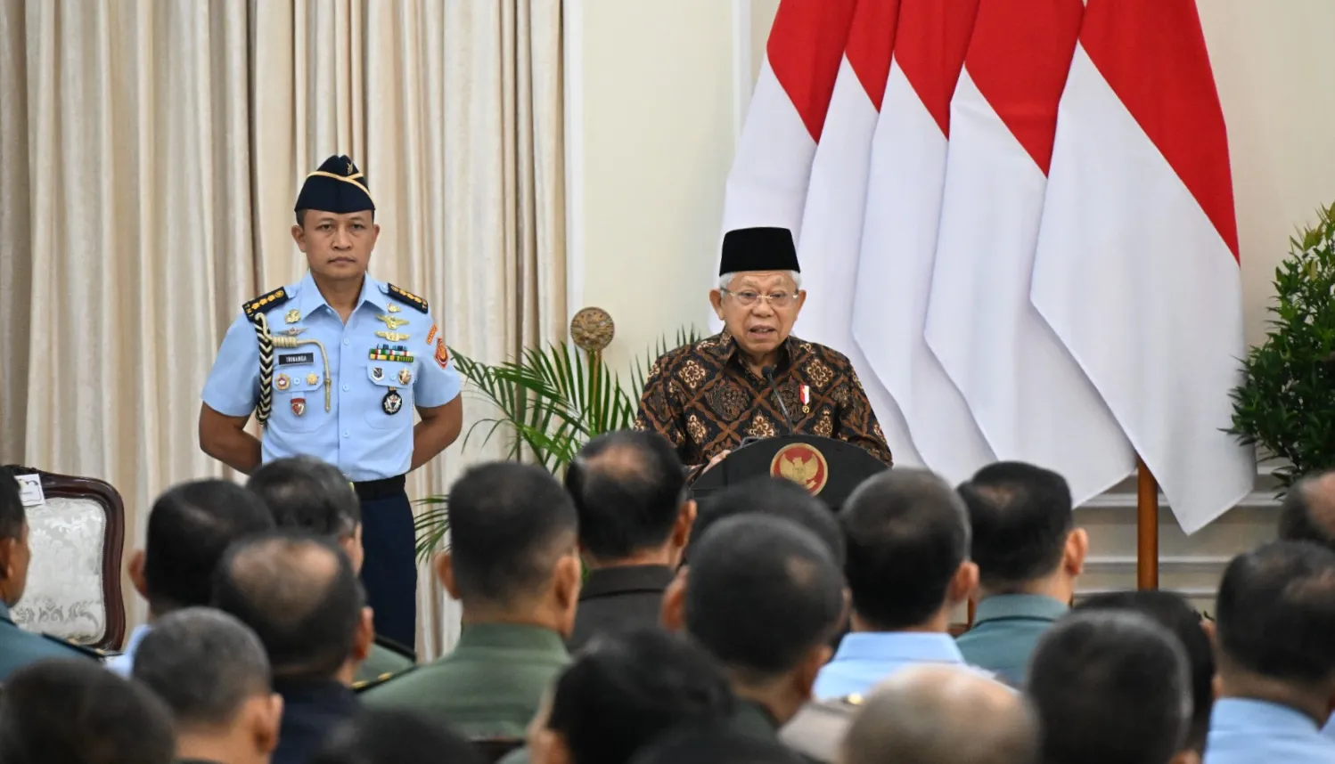 “Pada kesempatan ini izinkan kami menghaturkan banyak terima kasih atas kesediaan Bapak Wapres karena di tengah kesibukan tugas kenegaraan, Bapak masih berkenan meluangkan waktu memberikan kuliah umum kepada para peserta pendidikan yang diselenggarakan oleh Lemhanas,” ungkap Eko.
