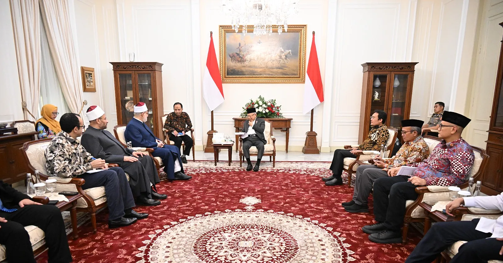 Kepada Wapres, Wakil Grand Syekh Al-Azhar menyampaikan salam hormat dari Grand Syekh Al-Azhar, Sheikh Ahmad Muhammad Ahmad Ath-Thayyeb, serta mengungkapkan kebanggaannya terhadap para pelajar Indonesia. Ia menegaskan bahwa para pelajar Indonesia selalu menempati tempat istimewa di hati civitas academica Al-Azhar. Prestasi mereka di berbagai tingkat pendidikan di Al-Azhar diakui dan diapresiasi, menjadikan mereka model yang baik dalam mewakili budaya dan kebangsaan Indonesia.