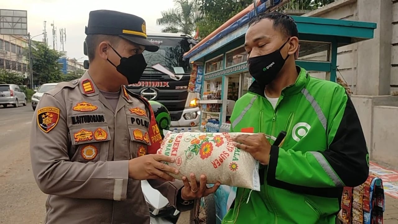 JAKARTA -Kalideres, Personil Polsek dipimpin langsung AKP. HASOLOAN SITUMORANG, S.H., S.I.K., M.H., selaku Kapolsek Kalideres, dengan memberikan bantuan sosial (Bansos) dari Kapolda Metro Jaya berupa beras kepada melalui Kapolres Metro Jakarta Barat kepada sejumlah pedagang kaki lima serta para driver ojek online (Ojol) yang terdampak Covid-19 dalam rangka PPKM Darurat di wilayah Hukum Polsek Kalideres Polres Metro Jakarta Barat, Rabu sore (14/07/2021).