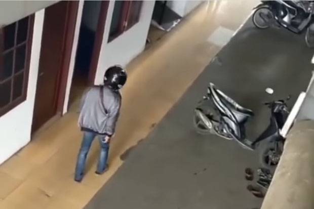 Video tersebut diunggahan ndrasamosir dan dibagikan kembali oleh akun info_jakartapusat di instagram. Terlihat seorang pria tengah mengendap dan memperhatikan indekos tersebut. Setelah memastikan aman, pria berjaket abu-abu dilengkapi helm tersebut langsung mengarah ke motor tujuan.