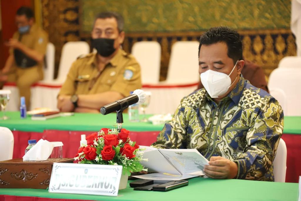 Pjs. Gubernur H. Bahtiar menghadiri Webinar Road To Indonesia Investment Day 2020 – Kepulauan Riau dari Gedung Daerah, Tanjungpinang, Selasa (13/10). Turut hadir pada kesempatan ini Plh. Asisten Pemerintahan dan Kesra Sardison, Plh. Asisten Ekonomi dan Pembangunan Mariyani Ekowati, serta Keplaa Biro Umum Martin L. Maromon.