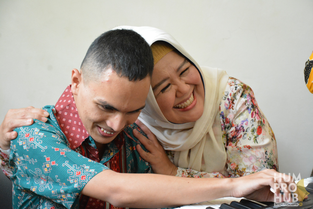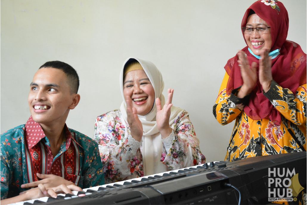 Wakil Gubernur Hj. Marlin Agustina duduk di sebelahnya. Dandi, salah seorang siswa SLB Natuna tunak dengan tuts-tuts di piano di depannya. Wakil Bupati Natuna, Hj Ngesti berdiri sambil menikmati lantunan lagu itu.
