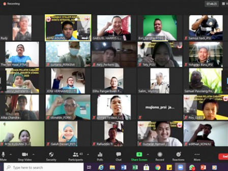 Komite Olahraga Nasional Indonesia (KONI) Jakarta Utara menggelar kegiatan pelatihan Cabang Olahraga secara daring melalui aplikasi zoom meeting. Kegiatan diikuti 58 peserta perwakilan dari 21 pengurus kota cabang olahraga (Cabor) se-Jakarta Utara.