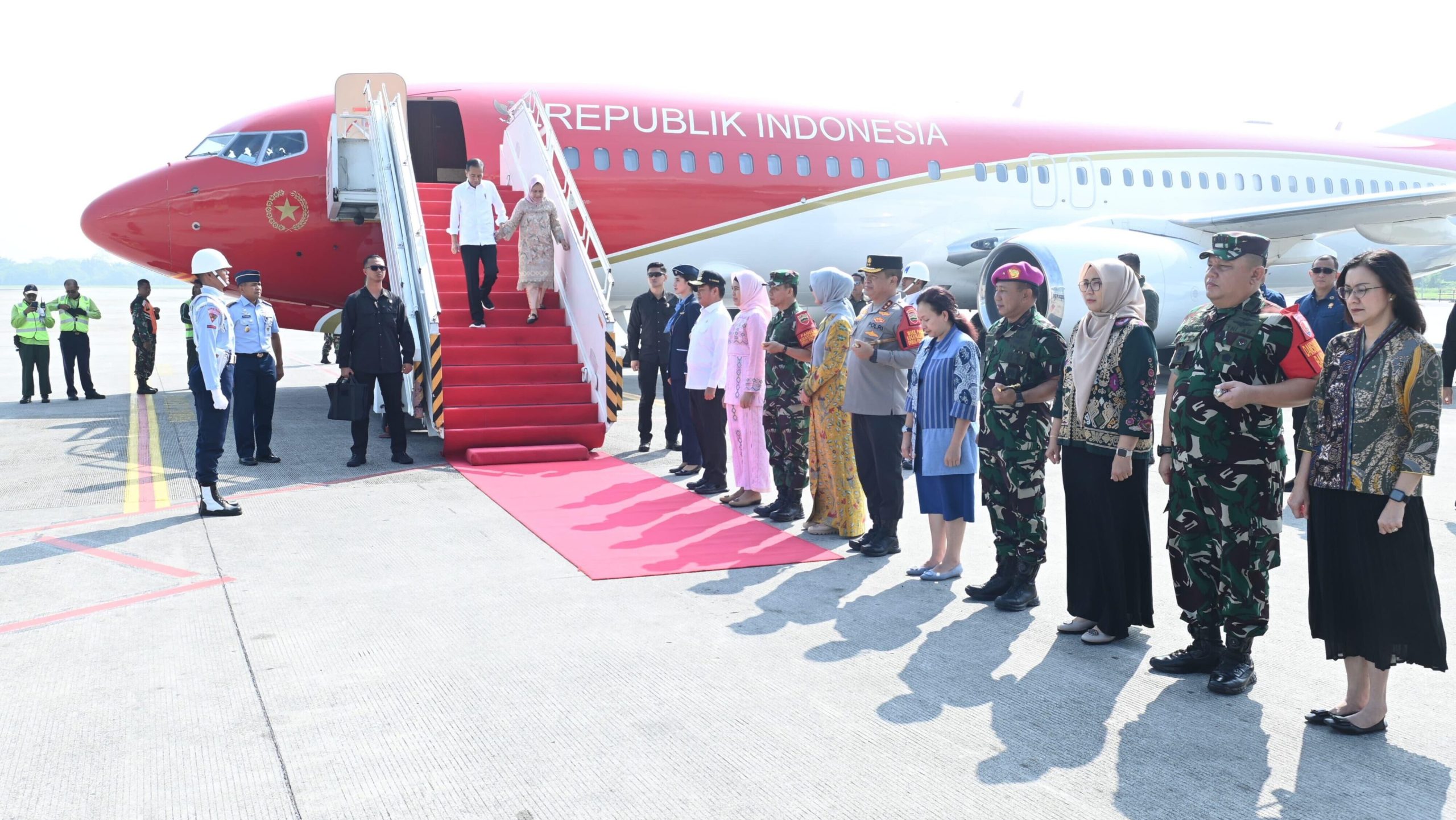 Sebelumnya, Presiden, Ibu Iriana dan rombongan lepas landas dengan menggunakan Pesawat Kepresidenan Indonesia-1 sekitar pukul 07.15 WIB melalui Pangkalan TNI AU Halim Perdanakusuma, Jakarta.