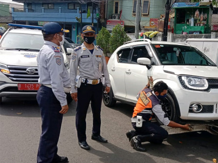 Suku Dinas Perhubungan (Sudinhub) Jakarta Selatan , Kamis (22/10), menindak 10 kendaraan roda empat yang kedapatan parkir di atas trotoar jalan.