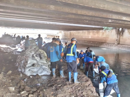Lumpur Kali Grogol di Kolong Tol Tanjung Duren Dikeruk