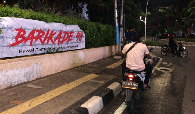 Mediaonline.co.id, JAKARTA– Spanduk milik Barisan Rakyat Kawal Demokrasi (Barikade) 98 tampak terpajang di beberapa titik di Jakarta. Dalam spanduk yang tersebar di beberapa tempat itu tertulis “BARIKADE 98, Kawal Demokrasi Jaga Indonesia.”
