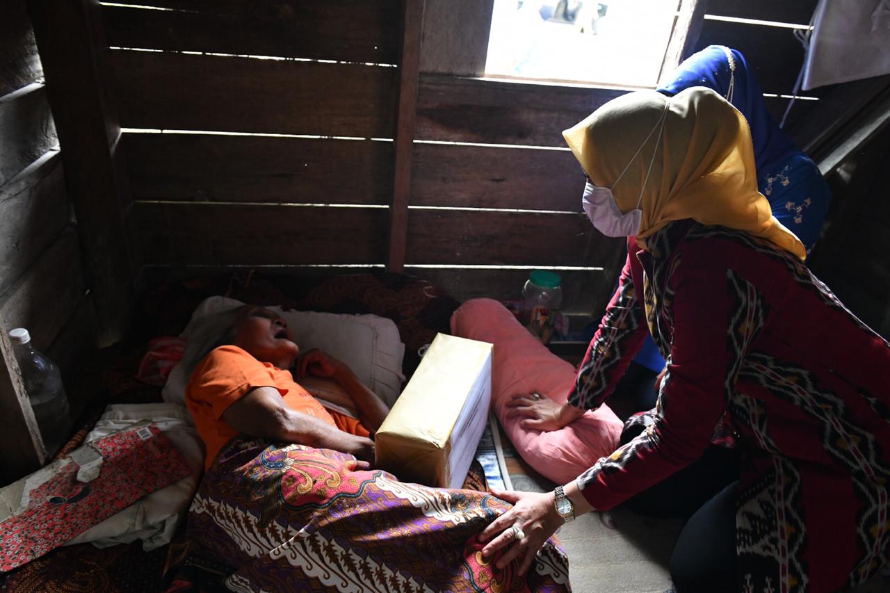 Tak tersembunyikan rasa haru dari wajah Sofha Marwah Bahtiar, Pjs TP PKK Provinsi Kepri ketika tiba di sebuah rumah sederhana yang di huni seorang lansia dengan anaknya yang penyandang disabilitas. Tanpa di aba-aba, Sofha langsung merunduk dan menggenggam tangan lansia bernama Wan Fatimah lansia tersebut. Matanya berkaca-kaca.