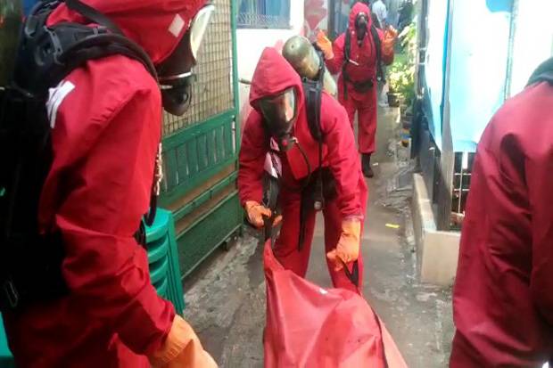 JAKARTA – Petugas Damkar Jakarta Timur mengevakuasi Ag (55), warga Kampung Pangarengan, Jatinegara, Cakung, Jakarta Timur yang ditemukan meninggal dunia di rumahnya, Selasa (27/7/2021).