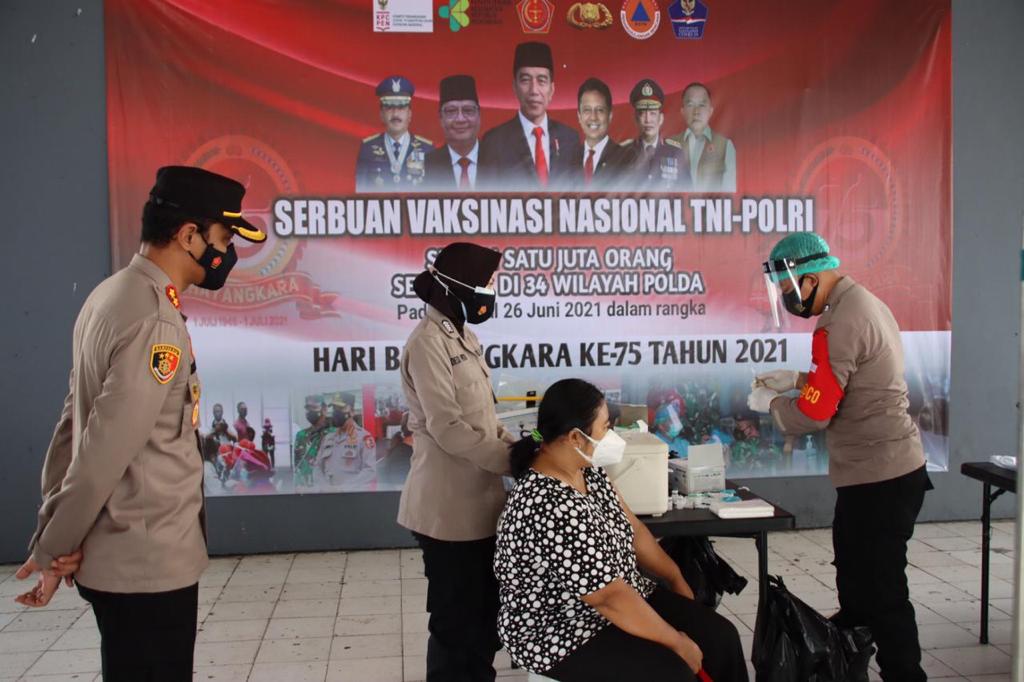 Jakarta– Menyambut Hari Bhayangkara ke 75 Polres Pelabuhan Tanjung Priok di Kampung Tangguh Jaya Rusun Budha Tzu Chi Muara Angke, menggelar vaksinasi bertema” Sehari Satu Juta Orang Serentak di 34 Wilayah Polda.