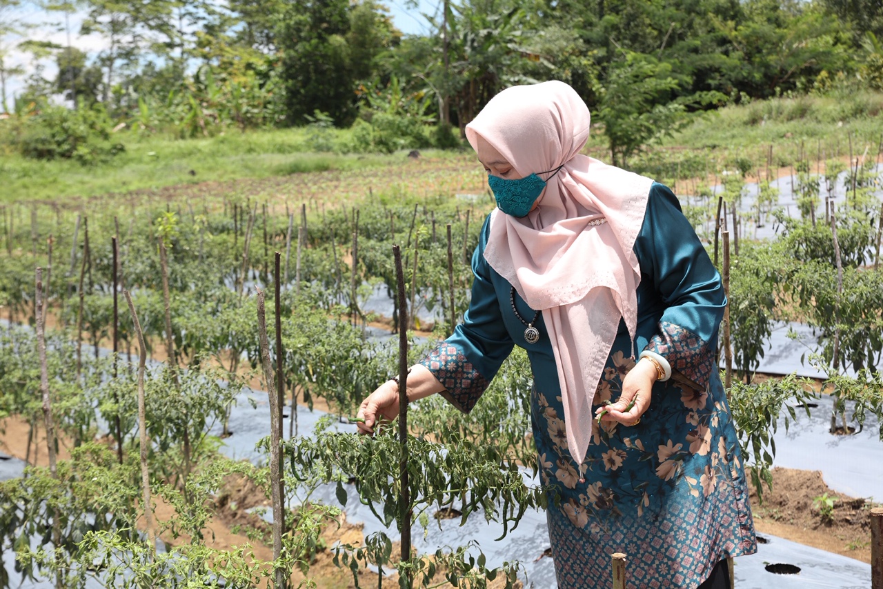 Dalam kesempatan itu, Istri Gubernur Kepri ini bersama sama memetik cabe yang sudah siap dipanen dengan luas satu hektar dengan tanaman termasuk jagung, terong dan cabe rawit.