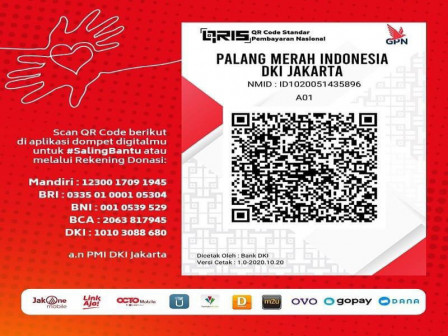 Palang Merah Indonesia (PMI) Provinsi DKI Jakarta berkolaborasi dengan Bank DKI Jakarta menerbitkan QR Code atau kode matriks untuk memudahkan donasi atau penggalangan dana pada Bulan Dana PMI tahun 2020.
