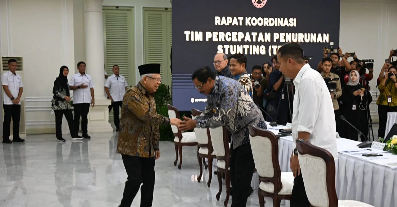 Terkait hal tersebut, Wakil Presiden (Wapres) K.H. Ma’ruf Amin selaku Ketua Pengarah Percepatan Penurunan Stunting mengundang para Menteri dan Kepala Lembaga yang tergabung dalam Tim Percepatan Penurunan Stunting (TPPS) Tingkat Pusat, serta para Kepala Daerah dengan jumlah anak stunting terbanyak, untuk hadir dalam Rapat Terbatas (Ratas) Tingkat Menteri yang digelar di Istana Wapres, Jl. Medan Merdeka Selatan No. 6, Jakarta Pusat, Selasa (19/03/2024).