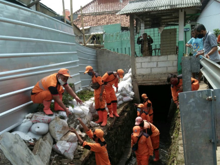 Selain membersihkan saluran, pihaknya juga membuat tanggul sementara dari karung pasir.