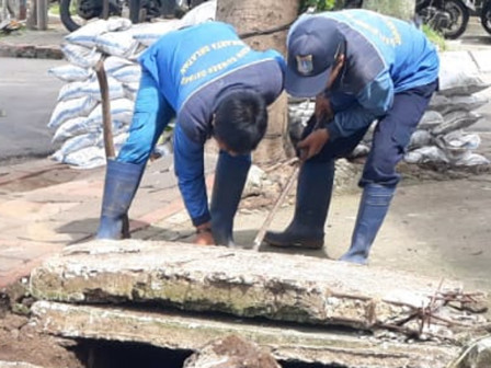 Pasukan Biru Kebayoran Baru Kuras Saluran di Jl Darmawangsa Raya