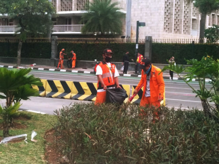 Kasudin LH Jakarta Pusat, Marsigit mengatakan, usai aksi unjuk rasa pihaknya langsung menerjunkan petugas untuk membersihkan sampah di sepanjang Jalan Thamrin atau sekitar Patung Kuda, Medan Merdeka Selatan, Timur dan Barat, Jalan Budi Kemuliaan, Patung Tani dan Simpang Lima Senen.