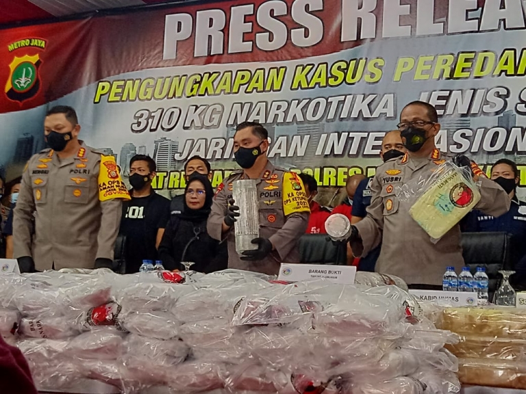 “Kedua tersangka memang dicurigai melakukan transaksi narkoba di wilayah hukum Polda Metro Jaya, kemudian setelah diikuti ini yang mengejutkan, karena saat digeledah ditemukan jumlah narkoba fantastis sebanyak 310 kilogram,” ungkap Kapolda Metro Jaya, Irjen Pol Fadil Imran di Hotel N1, Jakarta, Selasa (11/5/2021).
