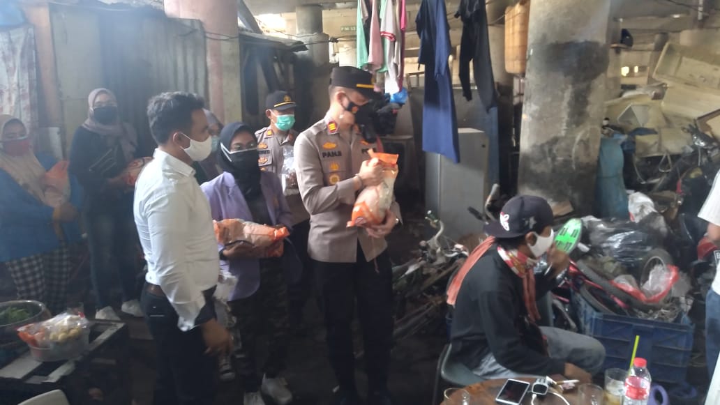 Kapolsek Pademangan AKP Panji Ali Candra,SE,SH,SIK,MH memerintahkan personil Polsek Pademangan untuk membagikan sembako beras,dan masker kepada warga guna mengurangi beban warga akibat dampak pandemi covid 19 dan pemberlakuan PPKM level 4, perwakilan mahasiswa ikut serta dalam kegiatan tersebut.
