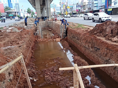 Pembangunan kolam olakan di Jalan Boulevard Raya, Kelapa Gading, Jakarta Utara terus dikebut. Ditargetkan, pengerjaan proyek ini rampung Maret 2021 mendatang.
