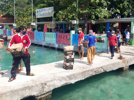 Pemerintah Provinsi (Pemprov) DKI Jakarta mendistribusikan 1.416 paket bantuan sosial (bansos) bagi warga di Kelurahan Pulau Tidung, Kecamatan Kepulauan Seribu Selatan, Kepulauan Seribu.