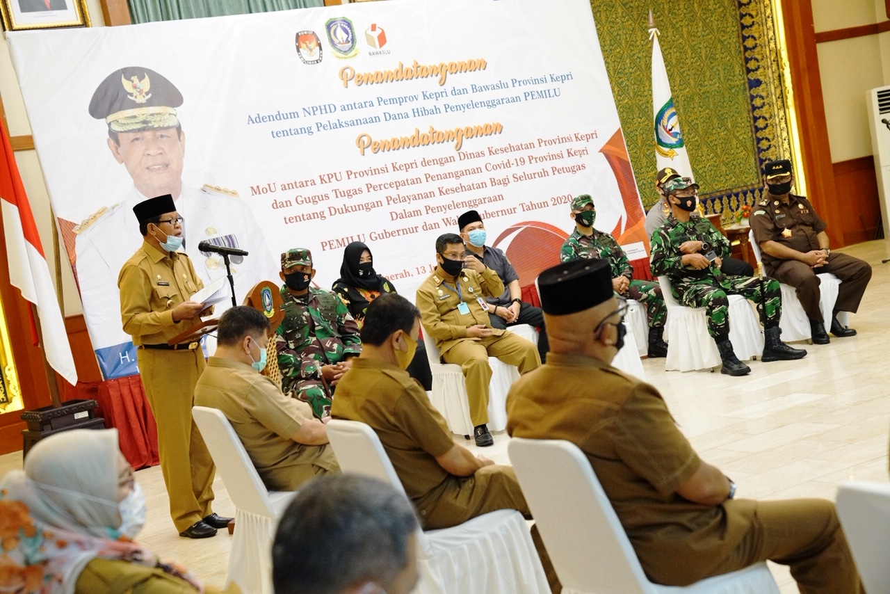 Pemerintah Provinsi Kepulauan Riau bersama Tim Gugus Tugas Percepatan Penanganan Covid-19, juga Bawaslu serta KPU Kepri siap untuk melaksanakan Pemilu serentak tahun 2020 yang akan berlangsung 9 Desember nanti dengan mengedepankan Protokol Kesehatan.