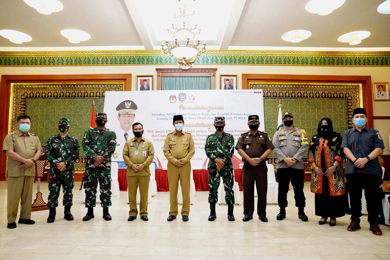 Kesiapan ini dituangkan dengan kegiatan penandatanganan adendum NPHD antara Pemerintah Provinsi Kepri dan Bawaslu Kepri tentang pelaksanaan dana hibah penyelenggaraan Pemilu 2020. Serta penandatanganan MoU antara KPU Kepri dan Dinas Kesehatan dan Gugus Tugas Percepatan Penanganan Covid-19 Provinsi Kepri tentang dukungan pelayanan kesehatan bagi seluruh petugas dalam penyelenggaraan Pemilu Gubernur dan Wakil Gubernur tahun 2020. Di Gedung Daerah, Tanjungpinang, Senin (13/7).