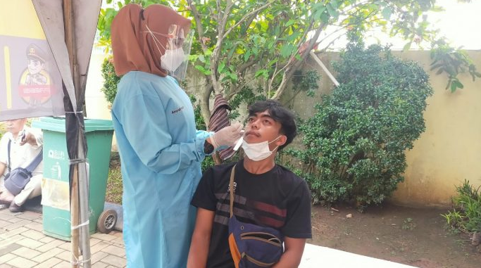 Jakarta-Polisi melakukan swab antigen terhadap para pemudik dan masyarakat Di wilayah hukum Polsek Cisauk, yakni di Kecamatan Cisauk dan Setu, Kabupaten Tangerang dan Tangerang Selatan, dan total yang yang di-swab pada hari ke – 9 sebanyak 69 orang dan hasilnya 1 orang dinyatakan reaktif.