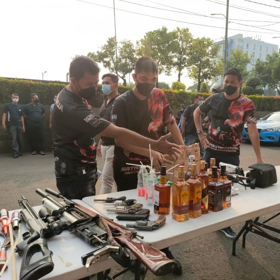 Hasilnya, polisi berhasil mengamankan 45 orang dengan berbagai barang bukti diantaranya senjata tajam, senjata rakitan, lima peluru tajam, kemudian ada drone, minuman keras, senapan angin, alat timbang.