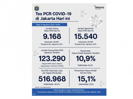 Perkembangan Data Kasus dan Vaksinasi COVID-19 di Jakarta per 9 Agustus 2021