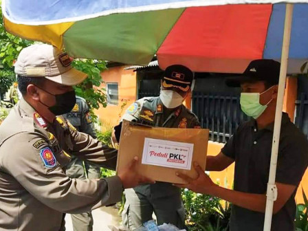 Perlu Dicontoh, Satpol PP Kecamatan Tanjung Priok Beri Paket Sembako Bagi Pedagang Kecil