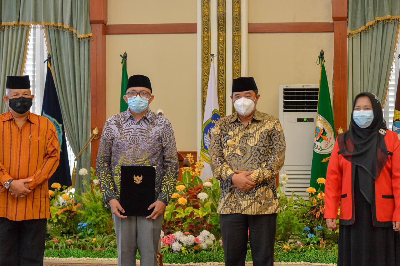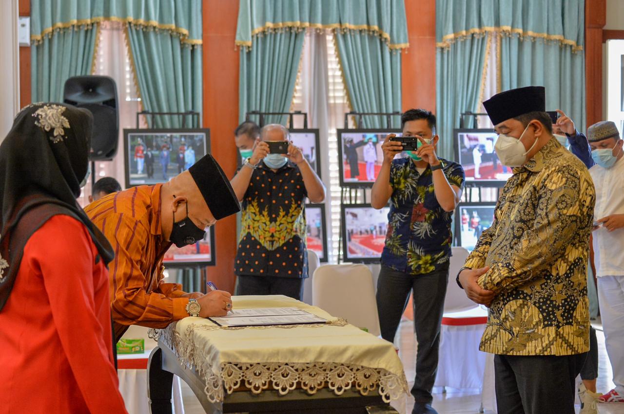 Penjabat Sementara (Pjs) Gubernur Kepri, Bahtiar Baharuddin mengikuti acara Serah Terima Jabatan (Sertijab) Kepala Badan Pengusahaan (BP) Bintan Wilayah Kota Tanjungpinang di Gedung Daerah, Ahad (27/9).