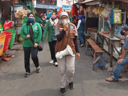Petugas gabungan dari unsur TP PKK, TNI/Polri dan jajaran Kelurahan Maphar, Taman Sari, Jakarta Barat hari ini melakukan sosialisasi protokol kesehatan 3M (memakai masker, mencuci tangan, menjaga jarak) pada warga di RW 05.