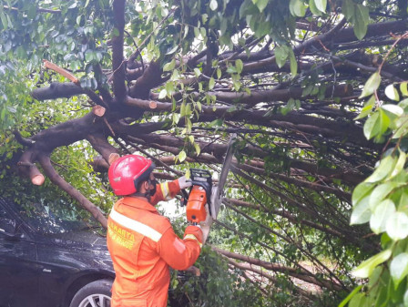Perwira Piket Sudin Gulkarmat Jakarta Selatan, Paryo mengatakan, pohon beringin berdiameter 60 sentimeter tersebut tumbang saat hujan disertai angin yang terjadi Selasa (22/9) jelang malam kemarin.