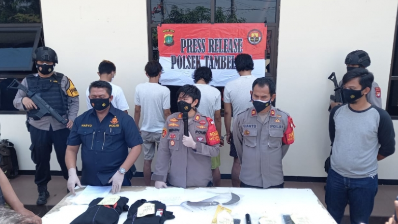 Bekasi – Kelompok begal motor sadis bersenjata tajam di Kabupaten Bekasi dibekuk anggota Polsek Tambelang. Kapolsek Tambelang (AKP. Miken Fendriyati) menerangkan, komplotan tersebut diringkus di Jalan Raya Kali CBL Tambun Utara.