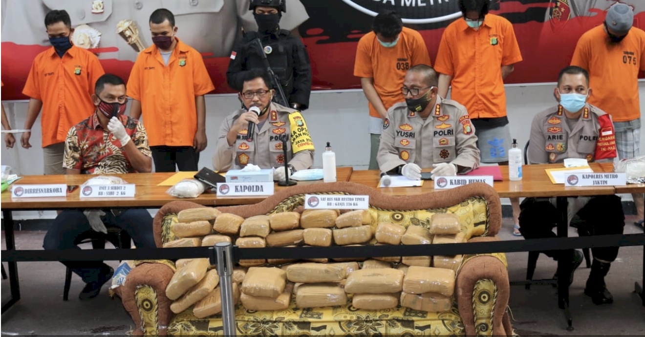 “Penerima ratusan kilogram ganja ini berinisial J beralamat di Cilandak,” ucap Kapolda Metro Jaya.