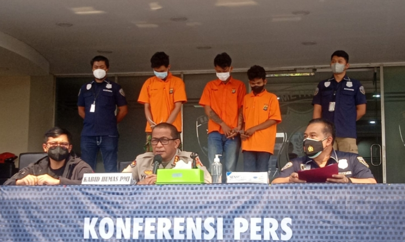 Kabid Humas Polda Metro Jaya (Kombes. Pol. Yusri Yunus) menerangkan terdapat tiga orang pelaku yang diamankan, salah satunya merupakan penadah hasil begal.